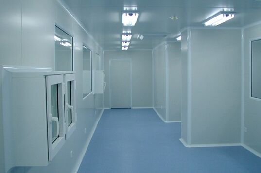 在无尘洁净净化车间装修中,彩钢夹芯板(围护)工程结束后,就可以进行管道试压、风口安装、过滤器安装、地面涂装等工序施工,具体净化车间装修工序请参照下列章节:1、管道试压、高效送风口安装、风管检漏及保温在安装彩钢夹芯板的圆弧角之前,应把水管与吊顶之上的主管接通并进行试压。然后安装高效送风口并用塑料薄膜封口(此时不许安装高效过滤器),用支风管把高效送风口与主风管接通,接通排风口支管,进行风管漏风检查,合格后进行风管及水管的保温。